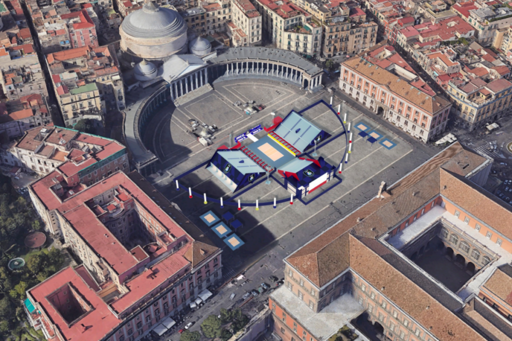 Lors de la traditionnelle conférence de presse, Giuseppe Manfredi, président de la Fédération italienne de volley-ball, a dévoilé une maquette de l’arène éphémère qui sera installée à la Piazza del Plebiscito, au cœur de Naples, pour le match d’ouverture de l’EuroVolley 2026. Cette rencontre, prévue le 10 septembre 2026, opposera l’Italie à la Suède.