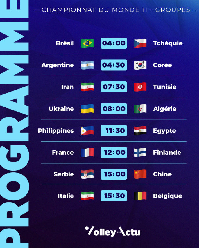 Tous les matchs sont diffusés sur Volleyball World TV (VBTV). La rencontre France – Finlande sera également retransmise sur la chaîne L’Équipe, tandis qu’Italie – Belgique sera visible sur L’Équipe Live. Ces deux affiches seront aussi à suivre en watch party sur Twitch.